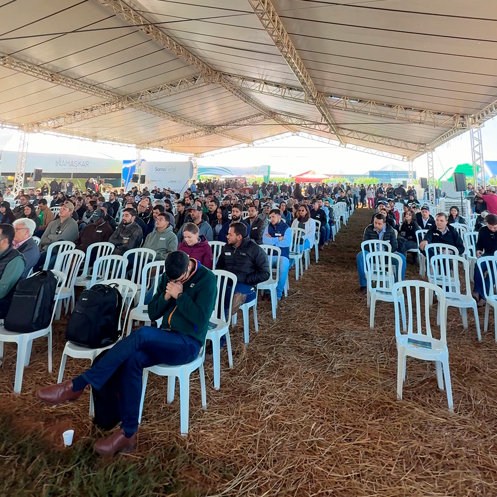 O FieldDay Somafield é o evento central da marca – o momento mais esperado do ano por produtores, parceiros e especialistas do agronegócio. Realizado no mês de maio, o evento marca o encerramento de um ciclo e o início de um novo, celebrando resultados e projetando o futuro da produção agrícola.